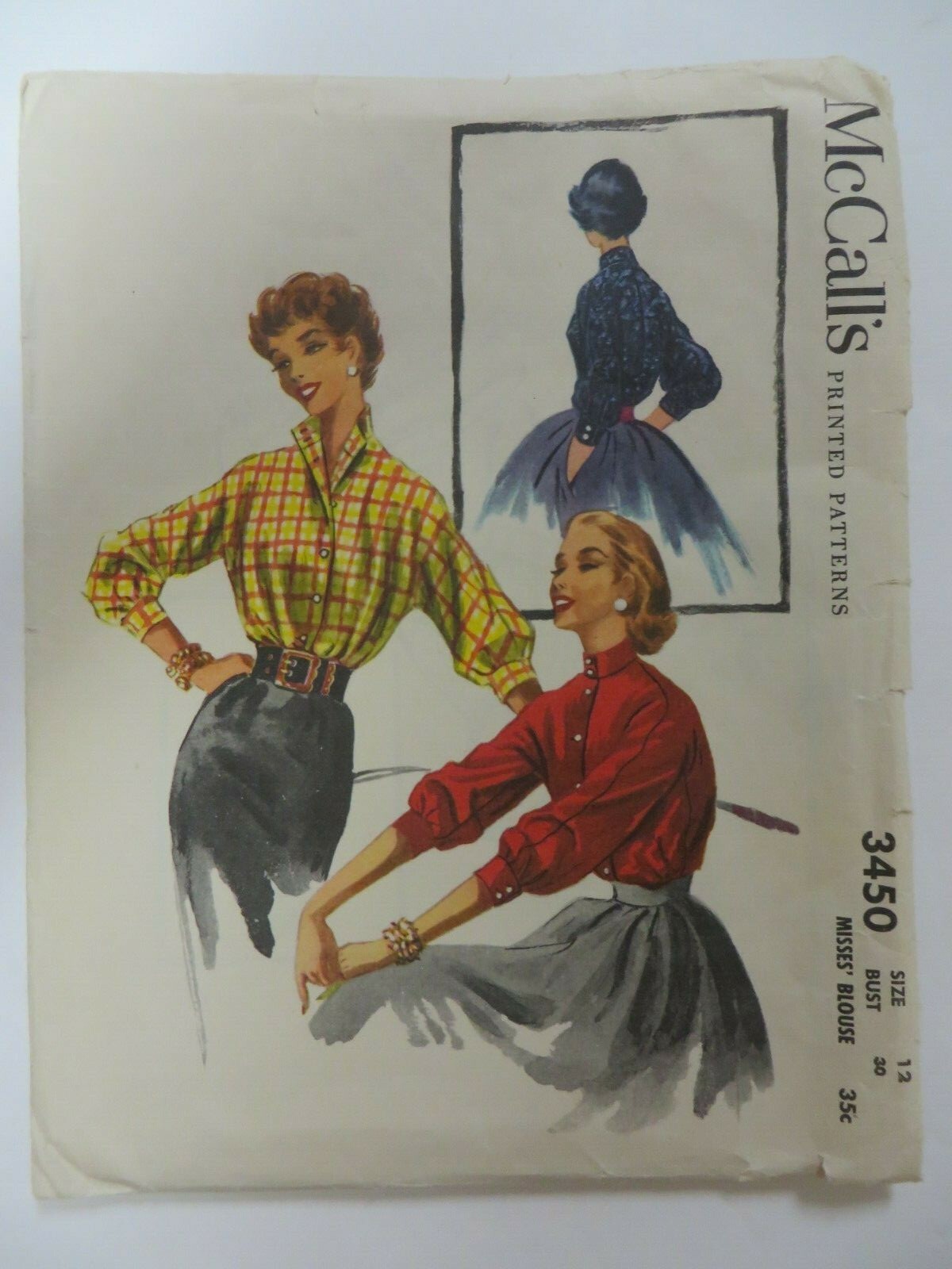 Vintage 50 S Mccall S Collared Shirt Blouse Sewing Pattern Women S Size 12 Uncut Ebay